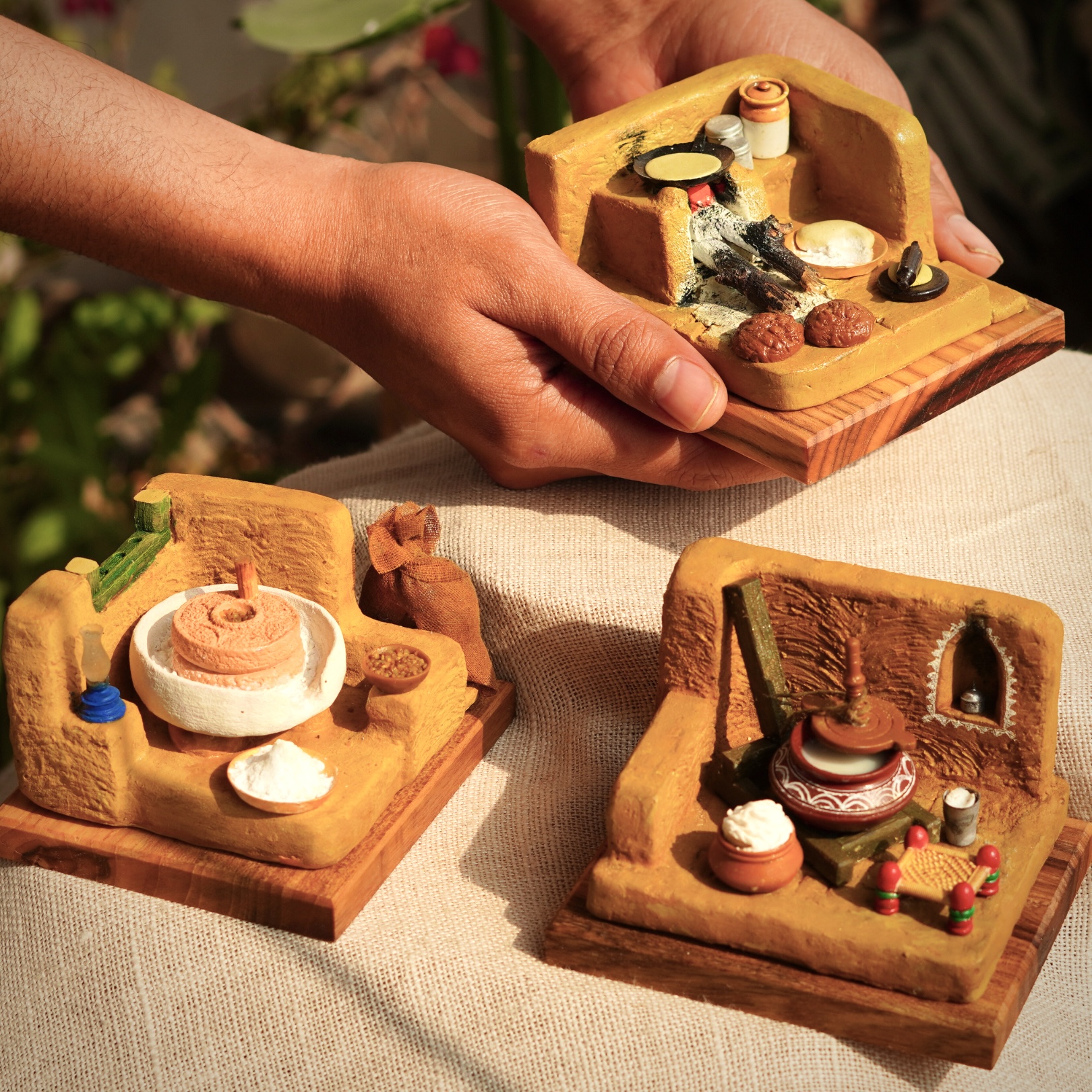 Crafted with precision and love, this miniature recreates the traditional method of hand-churning curd (दही) using a wooden churner (बिलोना), a ritual once woven into the daily rhythm of Indian households. Every detail tells a story—of early mornings in mud homes, of festivals filled with flavor, of grandmothers’ hands spinning magic into dairy.